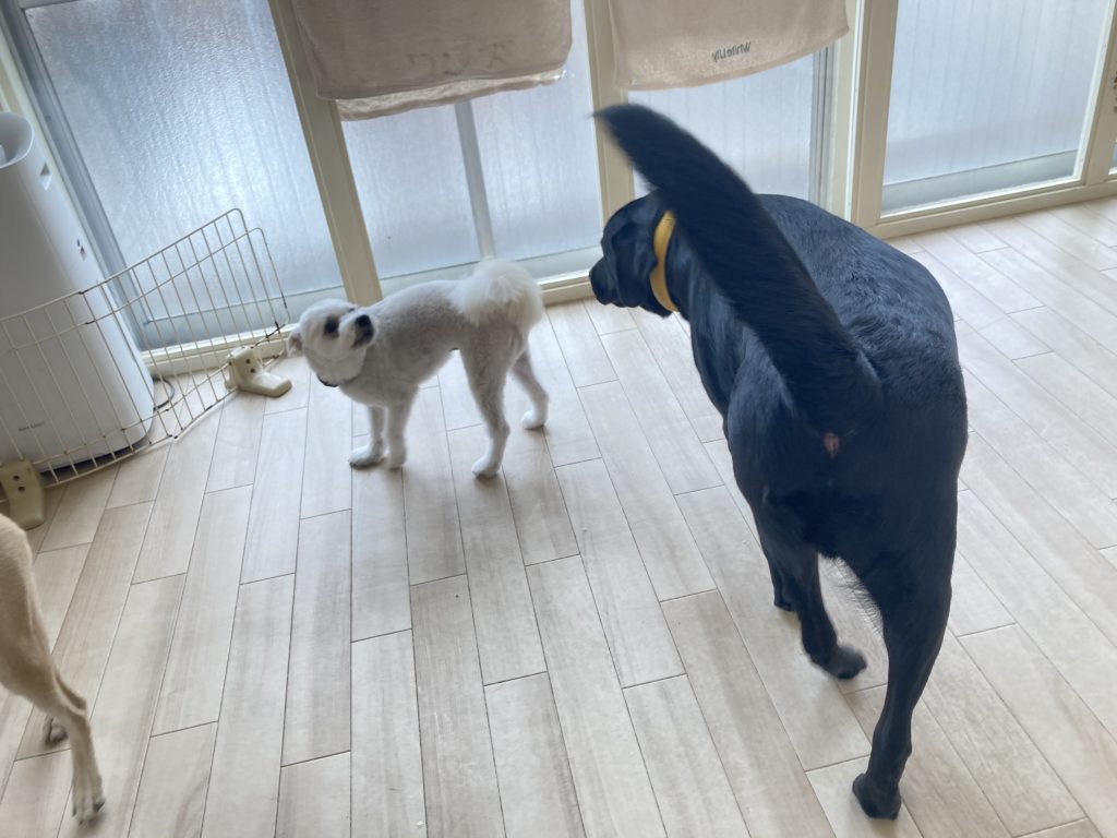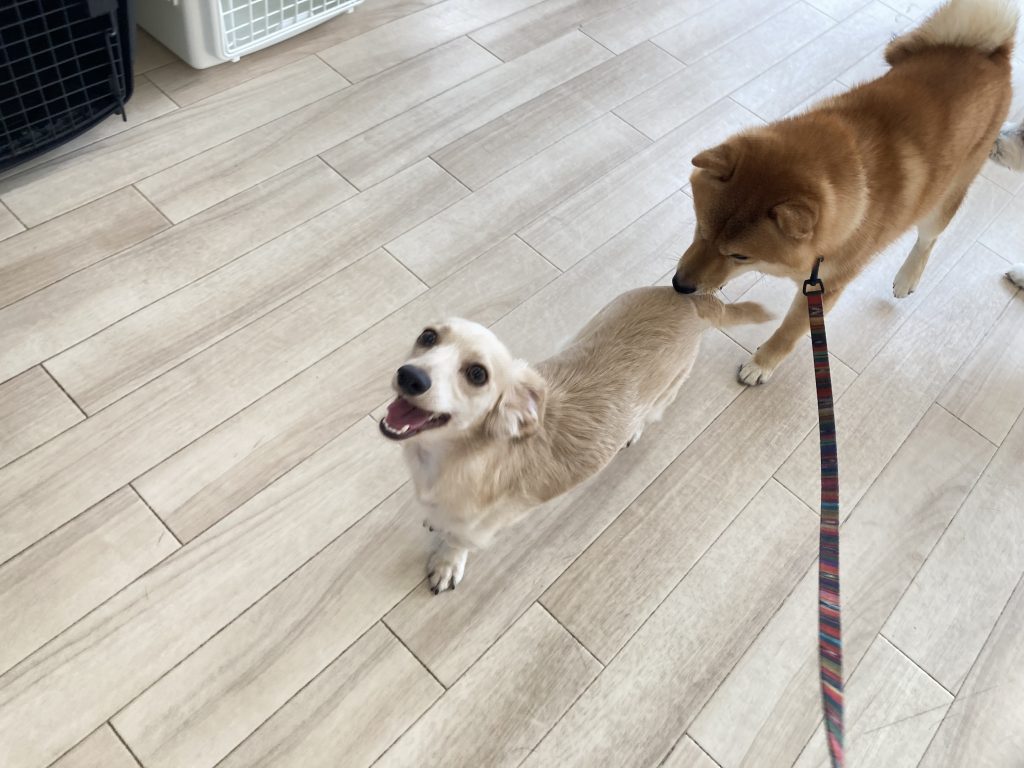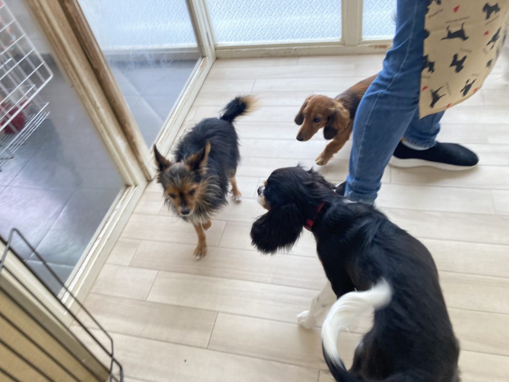 お泊まりだったちびた君は帰る前にお友達とご挨拶_(._.)_