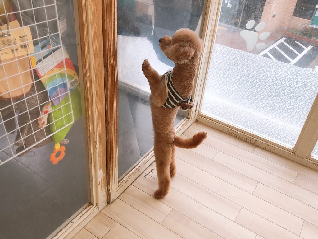 トリミングが終わってお迎えを心待ちにしているももちゃん♪