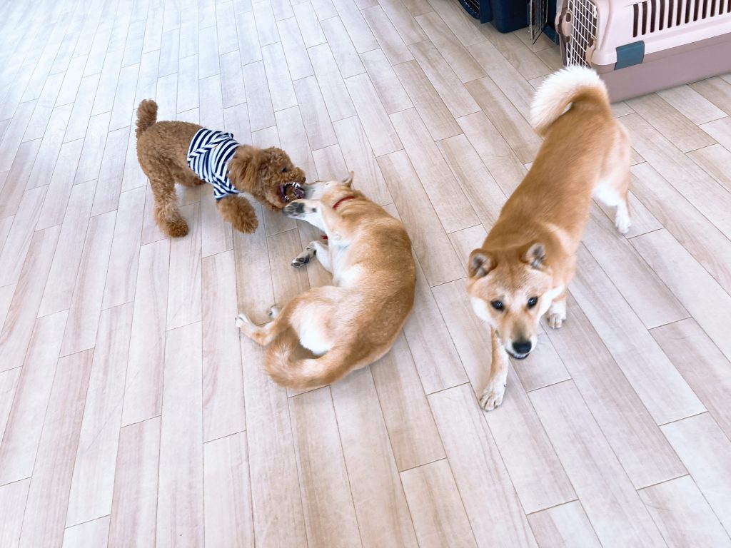今日も仲良しメンバーのトモ君・アテナちゃん・むうちゃんはお遊びに夢中ですヽ(^o^)丿