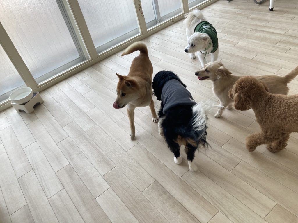 トリミングが終わった麦君とチョコ君にご挨拶をしているのはあむちゃん!