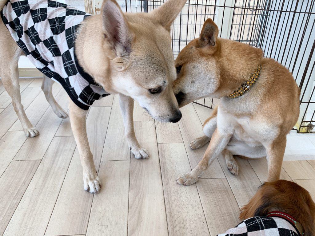 お鼻をくっつけてご挨拶しているおでん君とはるちゃん♡