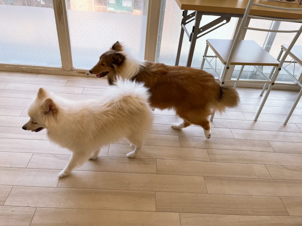 こたろう君は今日も仲良しのアテナちゃんとパワフルに遊んでいました(≧▽≦)