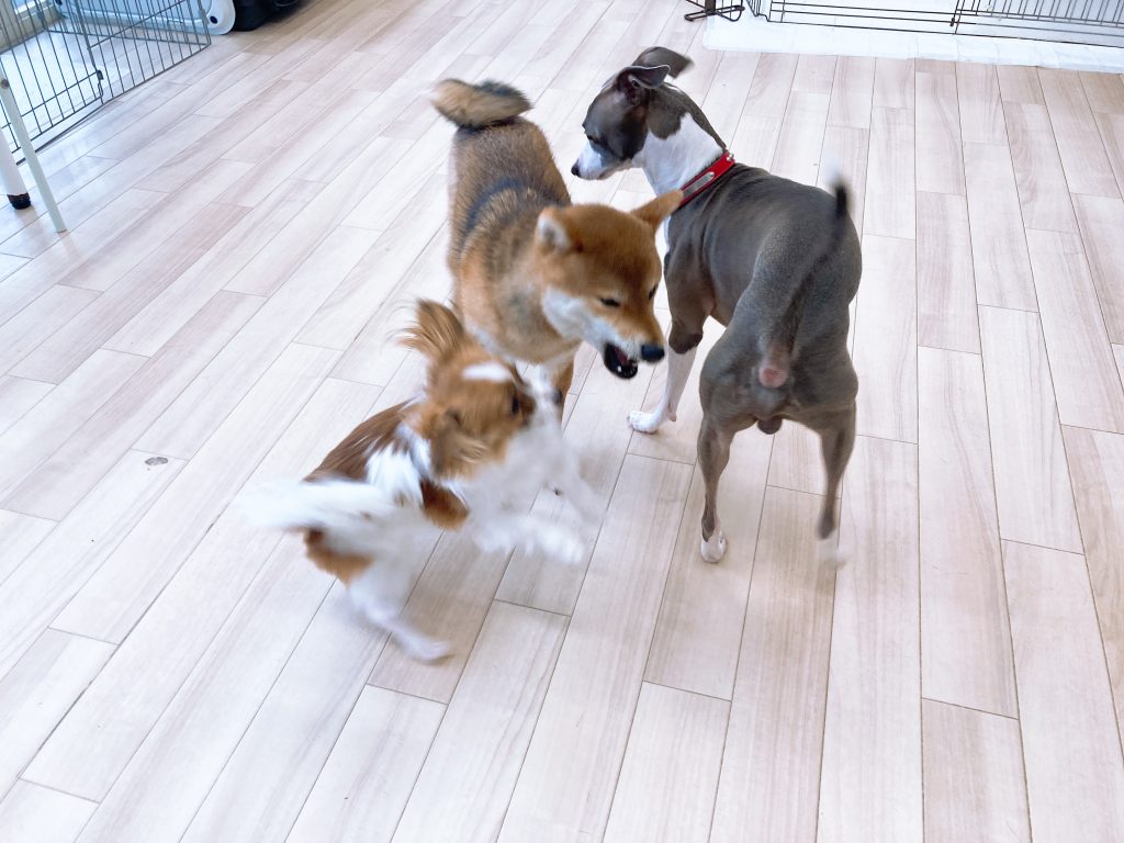 メグちゃんは朝からスタッフ犬のライト君と大はしゃぎです♩