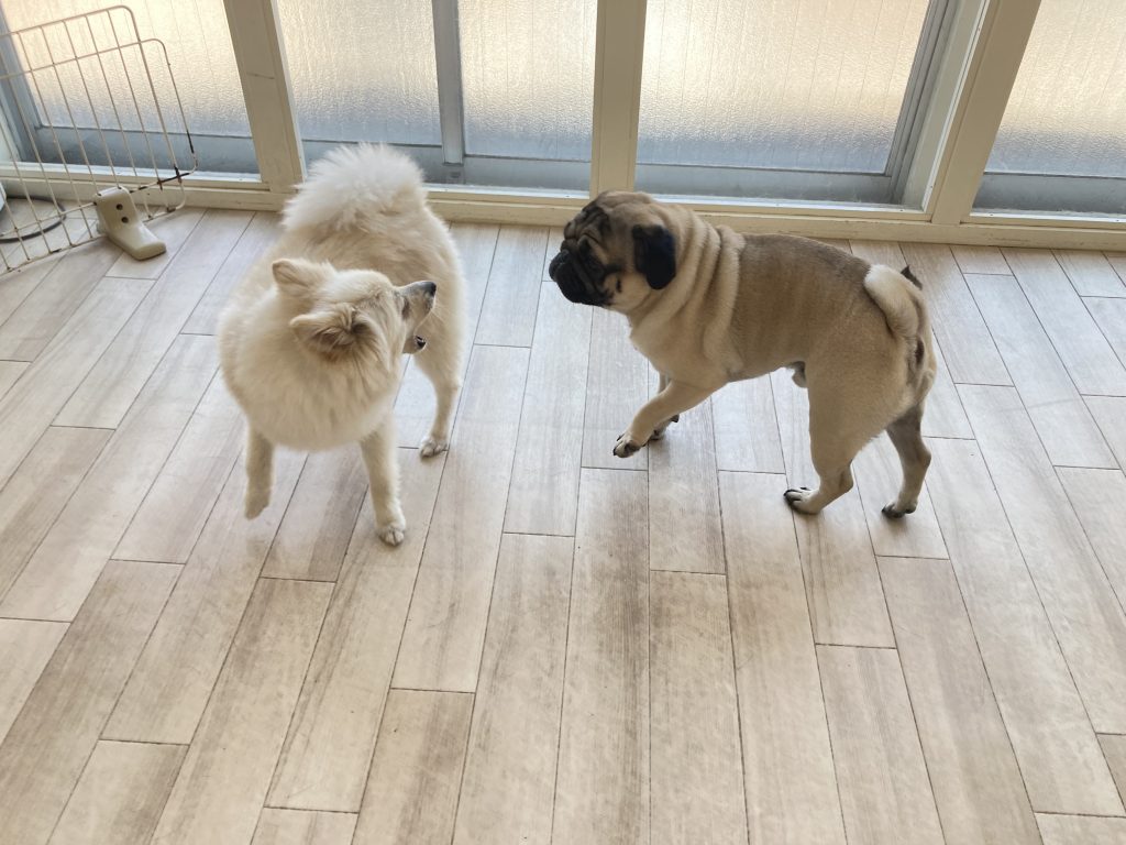 追いかけっこをして遊んでいたマック君とはるちゃん(#^.^#)