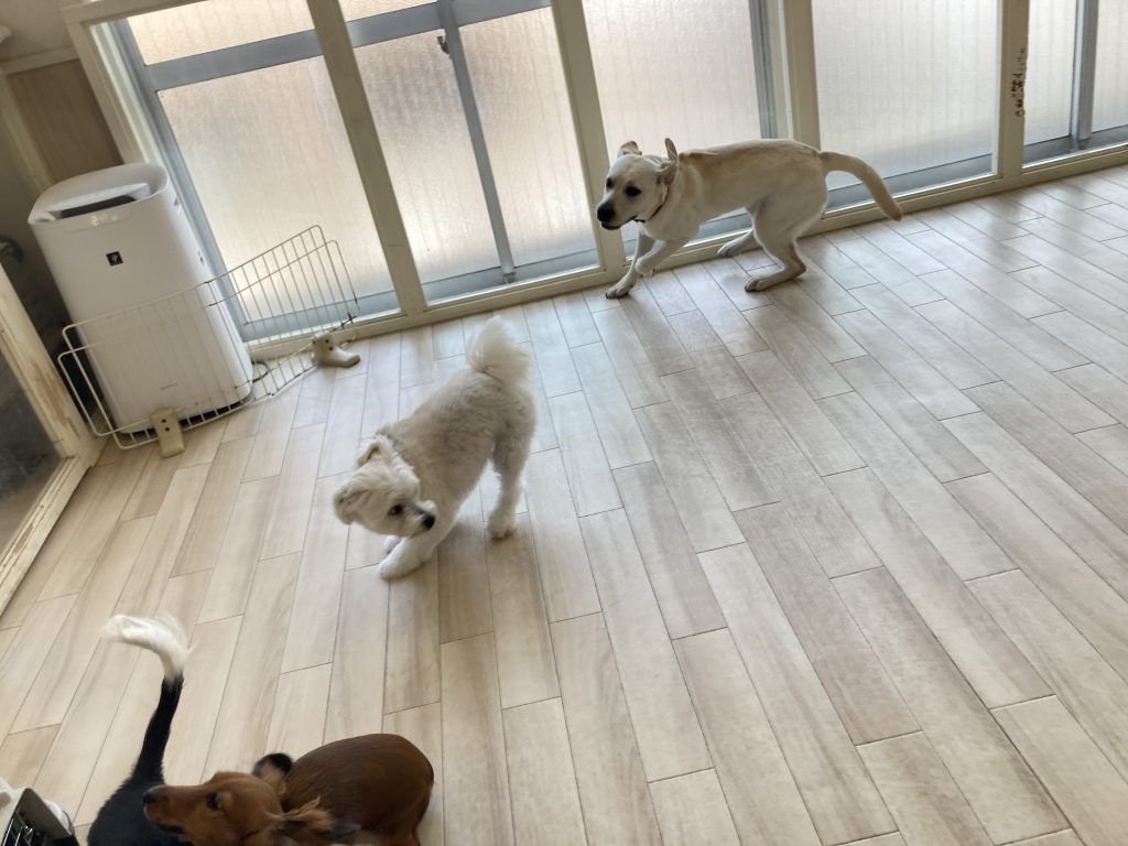 大の仲良しコンビ、ルーク君&アストン君はお遊びの真っ最中♩