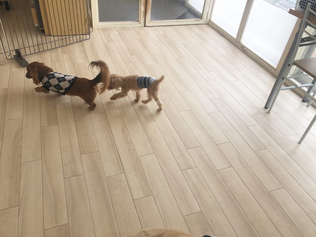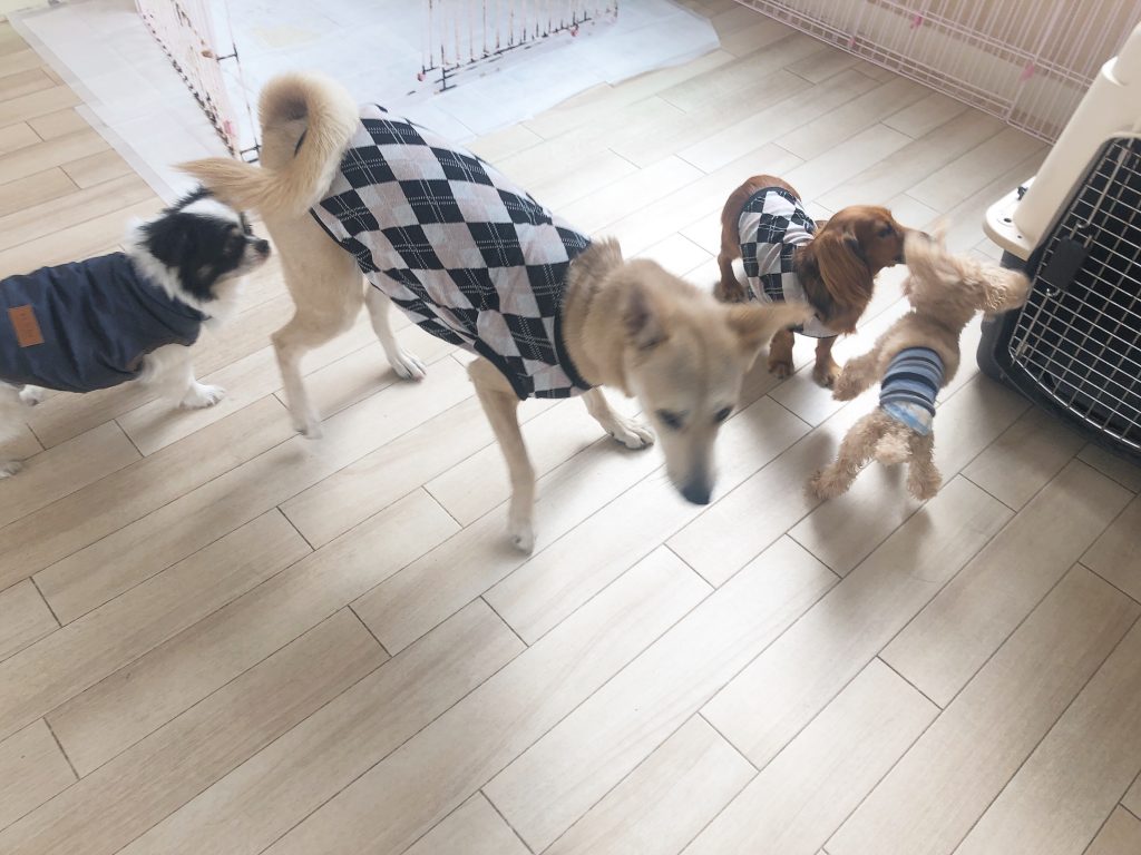 トモ君とはるちゃんは、今日からお泊まりのベル君、チョコ君と仲良くご挨拶していました(‘ω’)♩